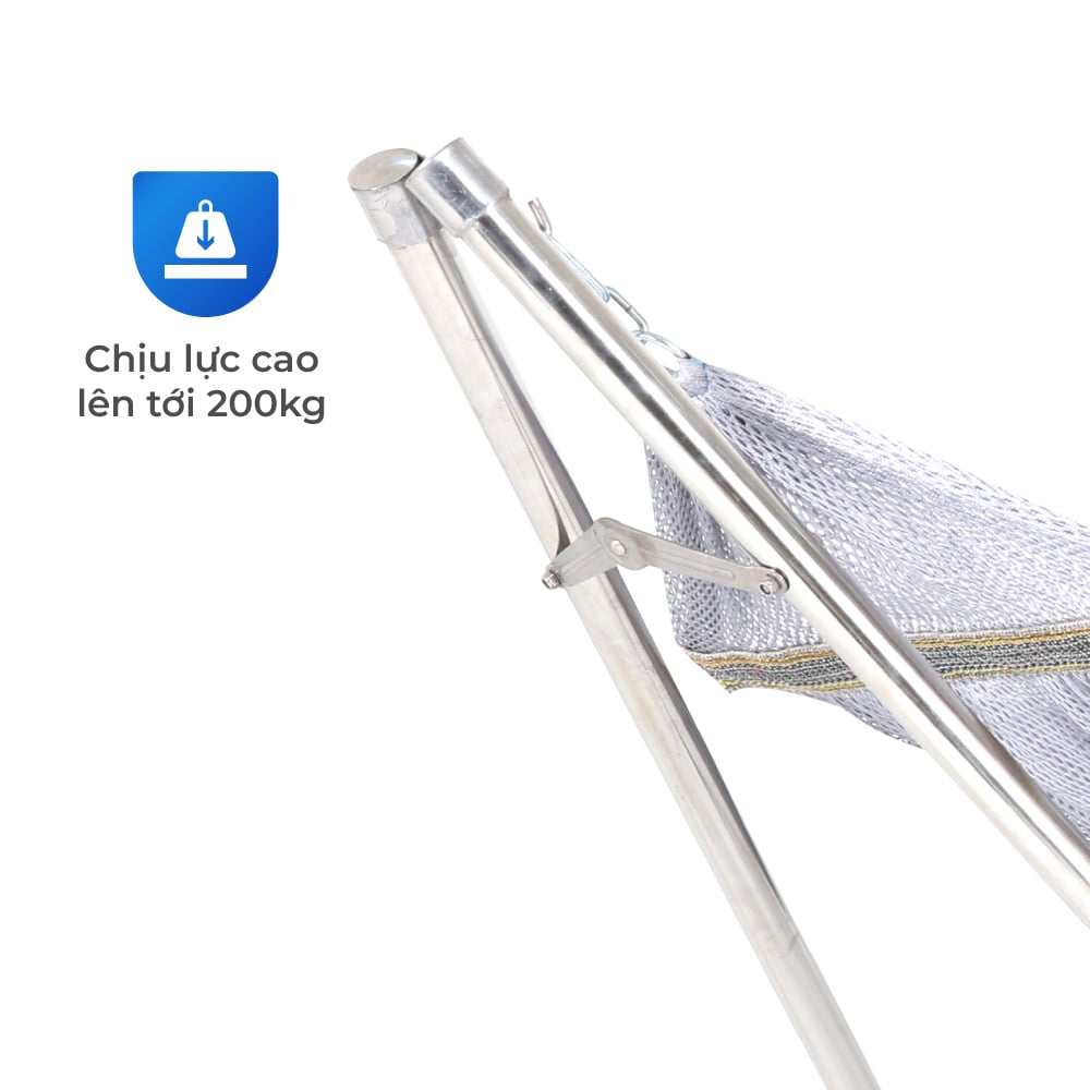 Võng inox DELI Toàn Nguyên Phát được sản xuất từ inox cao cấp sáng bóng, chịu tải trọng lên đến 200kg, mang lại sự vững chắc và bền bỉ vượt trội so với các dòng võng thông thường. Thiết kế khung inox dày dặn, ổn định giúp khắc phục nỗi lo võng ọp ẹp, kêu cót két hay nhanh xuống cấp, mang đến trải nghiệm thư giãn êm ái, thoáng mát và nhẹ nhàng như đang nằm giữa mây trời.